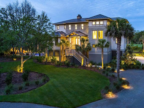 Set along the picturesque 11th hole of a Rees Jones Championship Golf Course, this stunning 4,055 sq ft home is located in the exclusive gated community of Briar's Creek--a 900-acre sanctuary featuring nature trails, a 75-acre stocked freshwater lake, and an Audubon International bird sanctuary.Designed by Jodi Crosby and built by Scott Koerber, this 4-bedroom, 4.5-bath residence is thoughtfully designed for luxury and functionality. Set on a quiet cul-de-sac, the impressive entry boasts an 11+ ft foyer ceiling leading to a soaring two-story family room with 20+ ft ceilings and a custom copper gas lantern. Enjoy seamless indoor-outdoor living through 16 ft sliding glass doors that open to approximately 1,000 sq ft of Garapa (Brazilian ash) decked porches with cable railings and anoutdoor gas fireplace. Inside, high-end finishes abound including 8" European cut white oak hardwood floors, high-end fixtures, and impact windows and doors. The gourmet kitchen is outfitted with a 48" Monogram oven and refrigerator, Monogram microwave, and a striking 14 ft quartz island. Additional highlights include a custom built-in wine bar with glass doors, a true home office with golf course views, and dual primary suites on both levels, each with walk-in closets. Perfect for entertaining, the saltwater gunite pool features a sun deck, in-pool stools at the cabana ledge, deck jets, and lighting. Enjoy 325 sq ft of covered poolside space complete with a full outdoor kitchen, built-in grill, beverage cooler, sink, and stainless steel cabinetry. A wraparound deck offers relaxing views of the pool and the pristine golf course beyond. Briar's Creek is ideally located with easy access to Johns Island Executive Airport, Freshfields Village, upcoming Sea Island Medical Pavilion and the prestigious Kiawah and Seabrook Islands. Plus, historic downtown Charleston is just a scenic 20-30 minute drive away, offering endless dining, shopping, and cultural experiences. Please note that the owner is a licensed real estate agent.