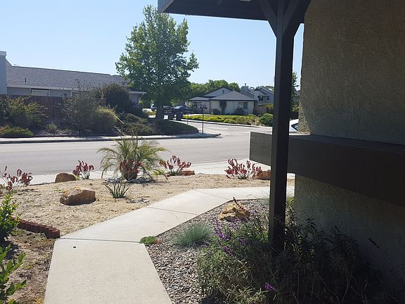 Spacious single level, single family home in a quiet, family oriented neighbood. Open floor plan with sight lines from kitchen through dining room and into living room. Gas, wood burning fireplace in living room. Breakfast bar area at kitchen counter has space for 2-3 barstools. Every bedroom, the living room, and the dining room all have vaulted ceilings. En suite, two sink, master bathroom with a skylight. Walk in master closet. White Plantation shutters on all windows and black out blinds on slider. New, 30 year roof installed in 2015. Laundry in the garage with storage space and hookups for both gas and electric. Finished garage accommodates two cars with space for storage. Partially covered cement patio in backyard. Grass in 3/4 of backyard which is very low maintenance as it's only approximately 300 Sq feet... Perfect for kids to play and takes less than an hour to edge and mow. Planter boarder with mature trees along entire backyard. New, nearly maintenance free, drought tolerant landscaping installed in front. Best school district in the area and two high schools are within 5 minutes walking distance. Montessori school/preschool is 2 minute walking distance. Approximately 1 mile from excellent, elementary school and within walking distance to the bus for junior high. Private, neighborhood, gated park. New exterior paint in 2010. 75 gallon water heater installed in 2011. Ceiling fans in every room except bathrooms. Alarm system already installed and active. Central air heating. Brand new garage door opener installed two months ago. Oven/range is only 5 years old. Close access to freeway but no freeway noise or congestion.