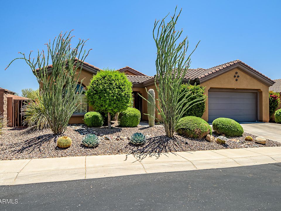 Magnificent VIEW! This HOME offers a luxurious living experience with its stunning golf course and mountain view. As you pass through the iron gate, you'll be welcomed by a charming courtyard, providing a private entrance to the casita. Once you step inside the HOME, you will immediately fall in Love with the impressive view that you can experience throughout the home.