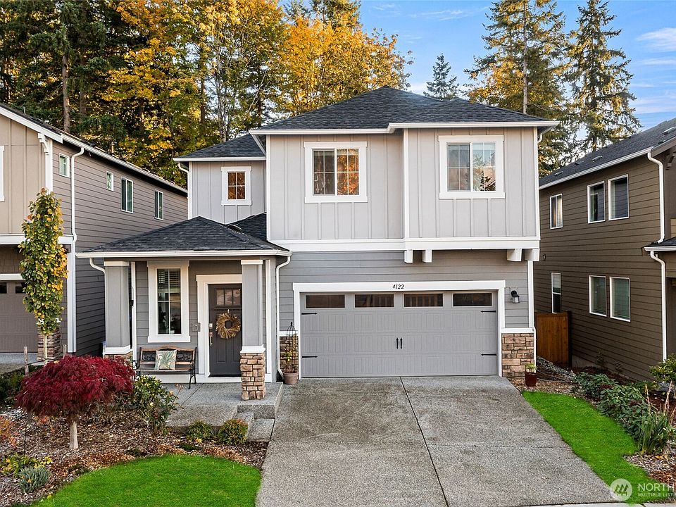Stunning sun-filled home on peaceful cul-de-sac backing to greenbelt in desirable Montevallo neighborhood in Bothell. Bright, open layout blends comfort & style w/modern finishes throughout. Chef's kitchen w/ quartz counters, SS appliances, gas cooktop, dbl ovens, oversized island & huge pantry, ready for entertaining. Main-level bdrm w/en suite bath, ideal for guests or multi-gen living. Upstairs offers a luxe primary suite w/spa-like bath & WIC plus an oversized 5th bdrm perfect for rec room, office or flex space. Fully fenced, beautifully landscaped yard. Enjoy A/C in Summer & cozy up to the fireplace in winter. Close to parks, shops, dining & top-rated Northshore schools. Perfect home for entertaining & one you won't want to miss!