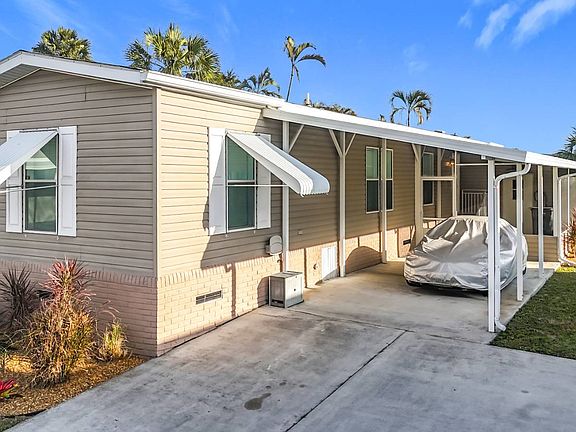 Discover peaceful, maintenance-free living in this meticulously updated 2006 Jacobsen home. Fresh 2024 updates include a new high-efficiency AC system and modern refrigerator - meaning no major expenses for years to come! This hurricane-resistant beauty sits in the prestigious Palm Lake Estates, a gated 55+ community where the second spouse can be 40+. Pet lovers rejoice - this is a pet-friendly community (with weight restrictions). Inside this spacious 1,056 sq ft (66'x16') home, you'll find thoughtful touches everywhere. The modern kitchen features soft-close cabinets with pull-out organizers that make cooking a joy. Both bathrooms showcase elegant tile work and new luxury vinyl plank flooring that's both beautiful and durable. The two bedrooms offer amazing built-in storage solutions, including a walk-in closet in the master that's bigger than some Manhattan apartments (we might be exaggerating, but only slightly!). Your Florida lifestyle extends outdoors with a protective carport, stucco skirting (goodbye, unwanted critters!), and a relaxing screened lanai for morning coffee. The bonus enclosed sunroom features new windows and AC, creating a perfect year-round retreat for reading, relaxing, or entertaining. Plus, there's a generous 12'x10' shed for your workshop or storage needs. New real wood blinds throughout add a touch of elegance and practical light control. Palm Lake Estates offers resort-style amenities with $902 monthly lot rent covering water, sewer, trash, basic cable, landscaping, and gated security. Enjoy three sparkling pools, two hot tubs, a fishing lake, horseshoe pits, and shuffleboard courts. The active community clubhouse keeps your social calendar full, and free boat/RV storage for two vehicles saves you thousands annually. Located in a prime spot, you're just minutes from John D. MacArthur Beach State Park, The Gardens Mall, and Downtown West Palm Beach. Enjoy cultural events at the nearby Kravis Center, tee off at North Palm Beach Country Club, or catch a quick flight from Palm Beach International Airport - all within 20 minutes. Don't wait - homes with this many updates rarely stay available long. Schedule your viewing today! (Ver abajo para español) ¡Descubra una vida tranquila y sin mantenimiento en esta casa Jacobsen 2006 meticulosamente actualizada! Las mejoras de 2024 incluyen un nuevo sistema de aire acondicionado de alta eficiencia y refrigerador moderno, ¡lo que significa que no habra gastos importantes durante años! Esta belleza resistente a huracanes se encuentra en el prestigioso Palm Lake Estates, una comunidad cerrada para mayores de 55 años donde el segundo cónyuge puede tener 40+. Los amantes de las mascotas pueden alegrarse: esta es una comunidad que acepta mascotas (con restricciones de peso). Dentro de esta espaciosa casa de 1,056 pies cuadrados (66'x16'), encontrara detalles pensados en todas partes. La cocina moderna cuenta con gabinetes de cierre suave con organizadores extraíbles que hacen que cocinar sea un placer. Ambos baños muestran elegante trabajo en azulejos y nuevo piso de vinilo de lujo que es tanto hermoso como duradero. Las dos habitaciones ofrecen increíbles soluciones de almacenamiento incorporadas, incluido un vestidor en la principal que es mas grande que algunos apartamentos de Manhattan (¡podríamos estar exagerando, pero solo un poco!). Su estilo de vida en Florida se extiende al aire libre con un carport protector, faldón de estuco (¡adiós, criaturas no deseadas!) y un lanai con mosquitero perfecto para el café matutino. El solario cerrado adicional cuenta con ventanas nuevas y aire acondicionado, creando un refugio perfecto durante todo el año para leer, relajarse o entretenerse. Ademas, hay un generoso cobertizo de 12'x10' para su taller o necesidades de almacenamiento. Las nuevas persianas de madera real en toda la casa añaden un toque de elegancia y control practico de la luz. Palm Lake Estates ofrece comodidades estilo resort con un alquiler mensual de $902