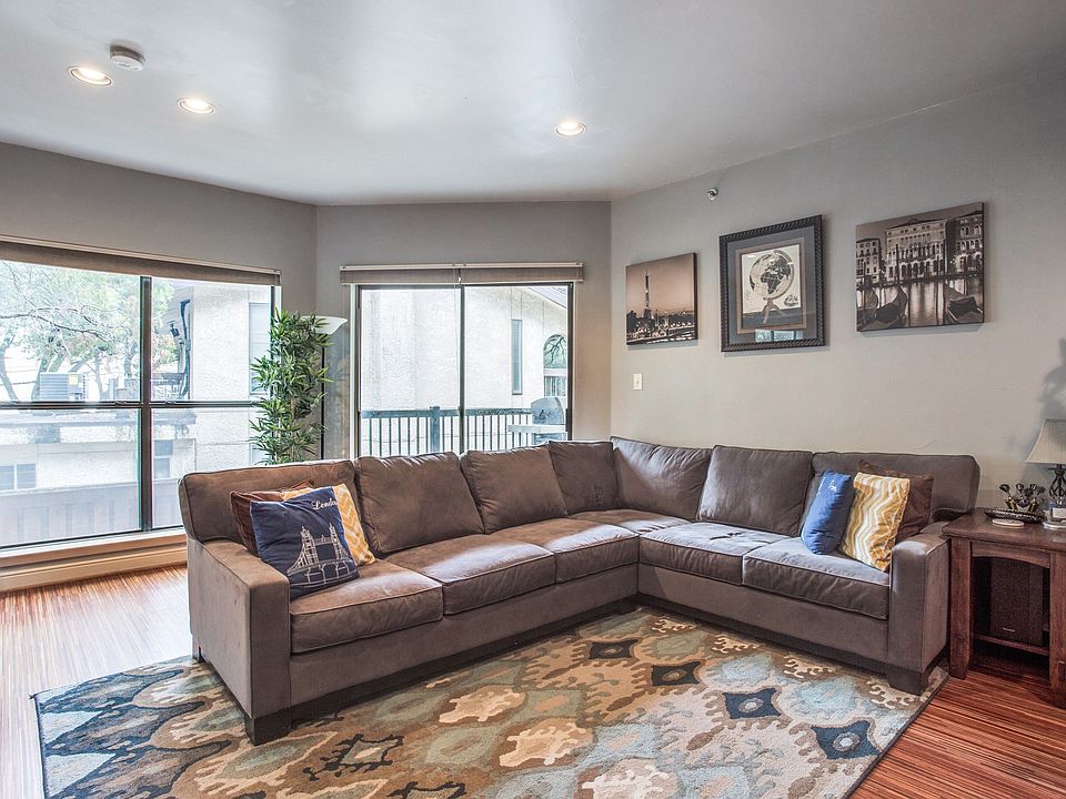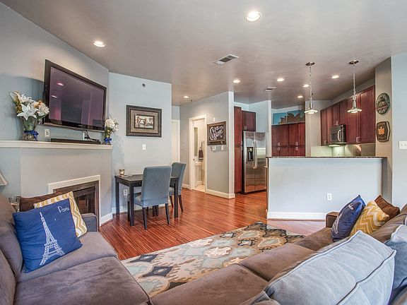 Gorgeous, contemporary condo with open floor plan, granite counter-tops, Stainless Steel Appliances, wine cooler, breakfast bar and ample counter and cabinet space, high ceilings, designer lighting, privacy blinds,and full size utility room. Secured entry and one covered parking space. Wonderful location near Highland park and Equinox, close to restaurants, entertainment, shopping and all major highways. Assigned parking space #7.