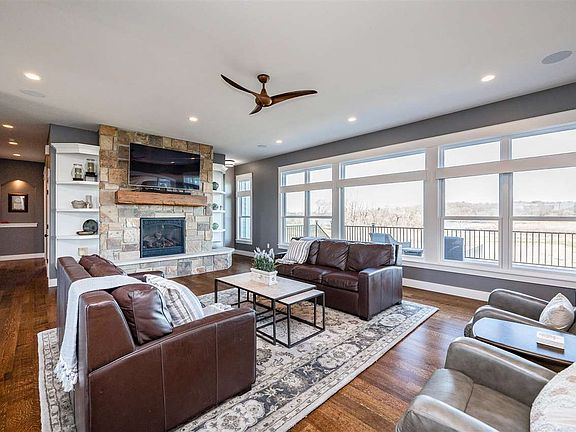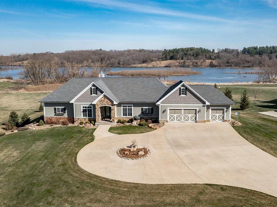 Feel like you’re on vacation everyday w this rarely available lakefront luxury custom home. Meticulously maintained Stebral built w/o ranch on 1.15 acres. Open layout, 10’ceilings throughout main level, hardwood floors & floor to ceiling windows. Cozy stone fireplace & formal dining room w an incredible cove ceiling. Gourmet eat in chef's kitchen w top of the line appliances, quartz countertops & island, hidden pantry & main floor laundry. Primary retreat offers a 4-season sitting area overlooking the lake, uniquely designed custom ceiling, spa bathroom w heated floors, soaking tub, WI shower, dbl vanities & 2 spacious WI closets. Office/BD opens complete w en suite bathroom. Sun filled wo LL perfect for entertaining has 2nd fireplace, wet bar, huge windows, BD 3,4,5 & 2 en suite bathrooms (1 open to the pool area). Find serenity lounging by the pool & patio. Walk to the lake w your kayak or paddleboard & commune w nature.