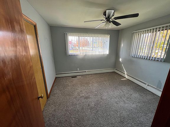 This home offers 3 beds 1 full bath 2 cars Attached garage Finish basement Huge fenced yard Pets allowed 2 fire places