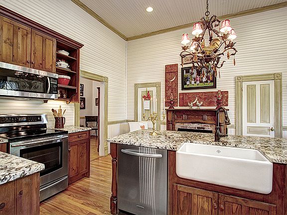 This historically significant home is a true labor of love! It comes complete with all the modern conveniences. Electric and plumbing have been updated. Great floorplan offers lots of flexibility, beautiful master suite with fireplace and claw foot tub, new vessel sink. 15 foot ceilings. A large 1.19 acre lot for privacy and room for gardening or other hobbies. Updated kitchen of the chef/entertainer and this property has been on the historical tour and can easily accommodate lots of guests and or weddings! Detached garage with storage above and additional storage building behind the garage. Yard partially fenced-- Walking distance to downtown Mint Hill, shops, restaurants, library and grocery stores!