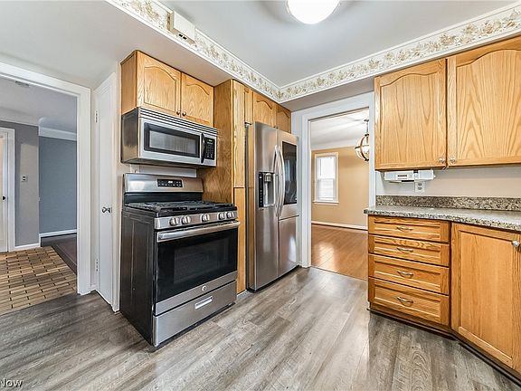 and updated kitchen. The kitchen showcases new silver appliances, providing a modern touch to the heart of the home.