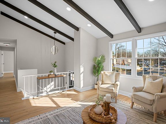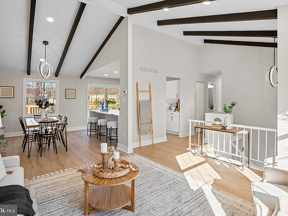 Welcome to 4122 Tiverton Rd! Nestled in the Sought after community of the woodlands in Randallstown. Stunning 4 Bedroom 2 Full bathroom Split Foyer home with attached garage . The main level offers an open living/dining room with exposed beams and vaulted ceilings. All new luxury vinyl plank floors throughout. Gorgeous kitchen with SS appliances, quartz countertops, island with additional seating, new cabinets and tile backsplash. There are two sliders one off the kitchen and the primary bedroom that lead to the expansive new wood deck. Upstairs you'll find 3 spacious bedrooms and 2 full bathrooms. The primary bedroom offers an en-suite bathroom. Make your way downstairs where you'll find a half bathroom, fully finished large rec room and laundry. Additional updates include a brand new roof, freshly painted throughout, new light fixtures. Schedule your showing today before it's gone!