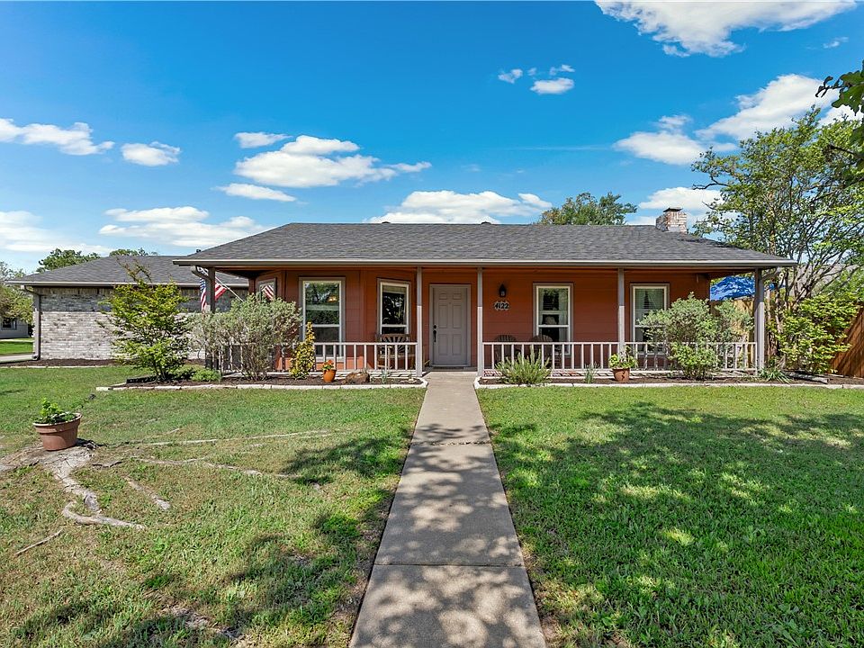 Nestled on a tree-covered corner lot, this stunning 3-bedroom, 2-bath home offers a blend of tranquility and modern living. With its inviting curb appeal, the home features a side-entry 2-car garage and a welcoming front porch that opens up to a luminous dining area, bathed in natural light streaming through elegant bay windows. The kitchen is a chef’s dream, featuring sleek stainless steel appliances, granite countertops, rich alder wood cabinets, abundant storage, and a spacious eating island. A gas range offers precision cooking, while a stunning wood beam adds warmth and character to the space. Enter the cozy den inviting you to unwind with wood laminate flooring, a charming fireplace, and ample windows that illuminate the space. The master suite serves as a serene retreat with double walk-in closets, granite countertops, and a skylight that adds natural light to the bath. The home continues to impress with two generously sized additional bedrooms and a second bathroom adorned with its own skylight. Step outside to enjoy the calming privacy of a fenced yard and an expansive wood deck for entertaining. Enhance your storage options with a temperature-controlled area in the garage, managing your belongings with ease while maintaining optimal comfort. There is even an RV pad! Enjoy the community pool and prime location near Copperfield Park, shopping, restaurants, and more. Discover the perfect fusion of convenience and charm in this exquisite Bryan home!