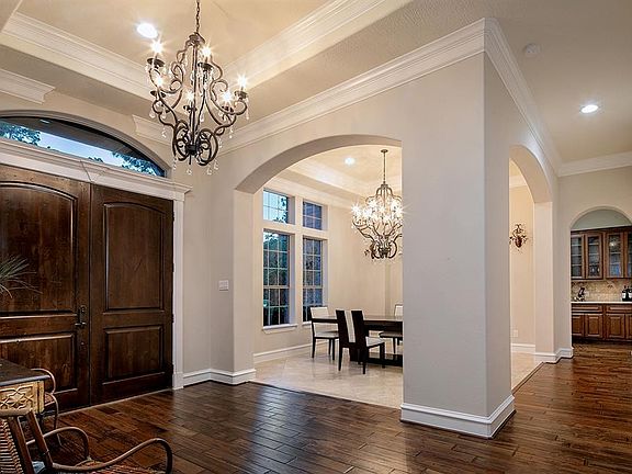 Fabulous custom home on over an acre wooded lot in Benders Landing Estates! Stunning hardwood floors, crown moulding, built-ins, art niches, neutral paint palette, generator & more! Open concept island kitchen with double oven, breakfast bar, huge stainless steel fridge (stays) & plenty of cabinet storage overlooks breakfast room & den with wood beam ceiling & stone fireplace; formal dining with tray ceiling; butler's pantry; sun room; handsome study with French doors & wood paneling; all 4 bedrooms down; Master has 2 closets. Huge game room & media up; there is an extra 6'x9' room upstairs that could possibly be turned into a bathroom. 3 car attached garage; private, completely fenced yard features covered patio, outdoor kitchen, and gorgeous pool & spa with waterfalls surrounded by mature shade trees. Benders Landing amenities include hike/bike trails, stocked lakes, parks, pool with splash pad, clubhouse with fitness center, basketball and tennis courts, soccer & baseball fields.