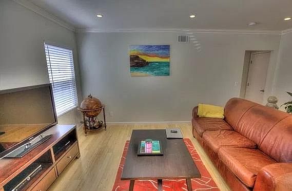 COMING IN DECEMBER 2025 Single Family Home for Rent. Contemporary style single story 3 bedroom/2 bath home. Great location on cul-de-sac! Features a landscaped area enclosed with redwood fence leading to the porch deck. Interior includes bamboo flooring, recessed lighting throughout, large skylight over the kitchen w/ quartz counters, glass tile backsplash, gas range, central heating/AC, prewired cable/phone/data hookups, master with walk-in closet and full ensuite bathroom. Laundry area with washer/dryer.Two on-site parking spaces and plenty of street parking for guests. Near Sony Pictures, high tech companies, and restaurants in downtown Culver City. Within minutes driving of Ralphs, Pavilions, Trader Joe's, and Target. 1 Year Lease Water, Sanitation and Gas included in the monthly rent Requires Security Deposit equal to First Month Rent Smoke-free environment (No Smoking) No pets