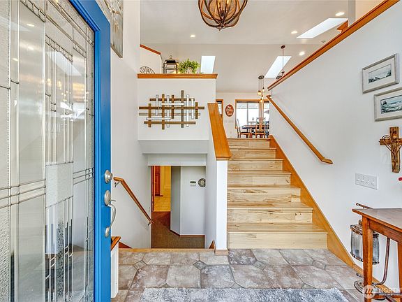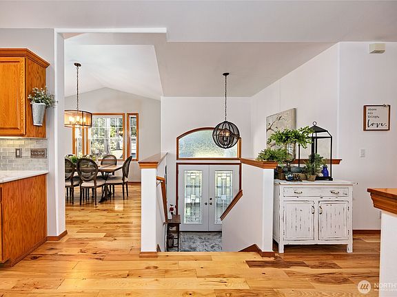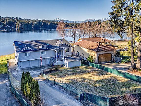Sweeping views of Wildcat Lake & Olympic Mtns in 2800 sf of no-bank waterfront w/ coveted western exposure. Enjoy the best of NW living in this turn-key home, complete w/ elevator & private dock, perfect for kayaking & fishing in the stocked trout lake. Main level w/ hardwood floors, custom kitchen (w/ quartz counters & SS) opens to LR w/ views of the Lake. Primary suite has custom walk-in closet & Lake views & just steps to hot tub. Downstairs enjoy the Family Rm w/ cozy fireplace & kitchenette, perfect for guests + den + much more. Storage everywhere & AC too! Don't miss the 3-car garage w/ "pass through" bay making launching your kayak easy. Enjoy sunsets on your private dock or by the campfire steps to the Lake. Just 8 minutes to Hwy 3!