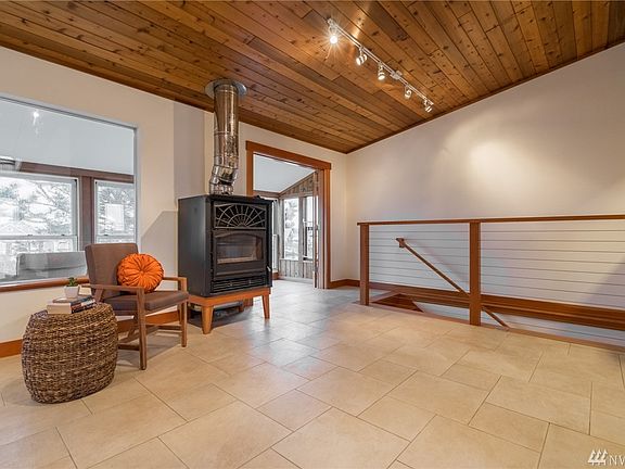 - Fireplace features: wood stove