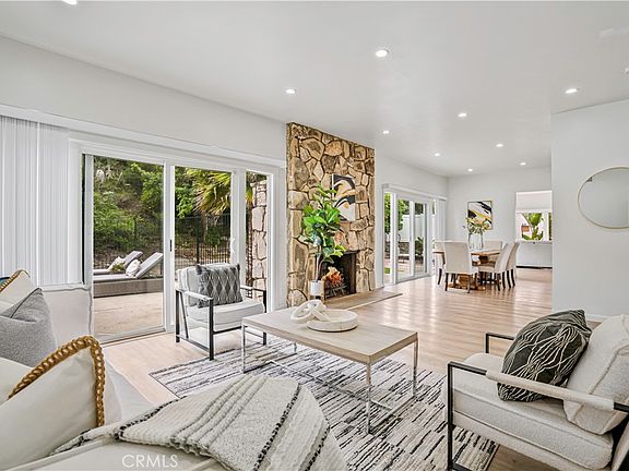 Enjoy coastal living in this inviting pool home with ocean views. Located in a quiet neighborhood, this charming single-level home offers ocean views and seamless indoor-outdoor living. Step through the front door into a spacious open floor plan featuring a living room with a cozy fireplace and a bright family room with its own fireplace and floor-to-ceiling windows that flood the space with natural light. Multiple sliding glass doors lead to a private backyard—perfect for entertaining. Designed for comfort and accessibility, the home offers one-level living and is handicap accessible. The modern kitchen boasts sleek quartz countertops, stainless steel appliances, and ocean views. Down the hallway, you’ll find four well-sized bedrooms, including a primary bedroom with its own ocean view, and two beautifully updated bathrooms—both featuring quartz countertops and skylights that bring in abundant natural light. Additional highlights include newer flooring and window coverings throughout, central air conditioning, and convenient in-home washer/dryer hookups. Outside, unwind in the private, heated pool and spa, or host guests in the spacious backyard retreat. A two-car garage with side door access and an additional concrete pad offers space for a car, boat, RV, or extra storage. This home combines coastal charm, accessibility, and bright, inviting spaces. NOTE: This property is NOT located in the Portuguese Bend landslide area!