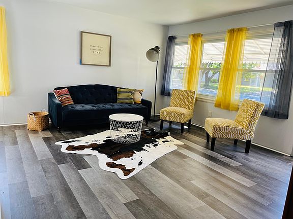 Freshly painted, clean, open concept slab home. Enjoy the perks of one level living. 3 bedrooms, 1 bathroom, large recreation room. All new flooring with a beautiful fenced in yard and large 2 car garage. Washer, Dryer , and lawn mower included. Amazing location with so many amazing restaurants near by. Walking distance to Dollar Tree. Plenty of parking on a quiet street, a great back yard for kids or a small dog, even raised beds for a garden.