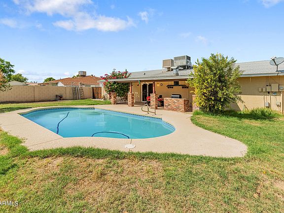 Fantastic block home on large lot with pool! This 3 bedroom 2 bathroom home offers a spacious living room, formal dining area, and large kitchen with plenty of cabinets. Updated windows, newer AC, and fresh carpet/paint! Spacious master suite with access to the backyard. Backyard features sparking pool, two storage sheds, and large covered patio with built in brick gas BBQ. 2 car garage with extra work area is perfect for tools and storage. RV gate at side yard and added concrete allows for ample parking. No HOA!