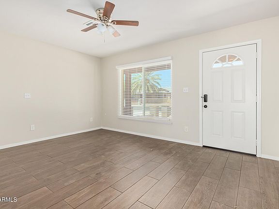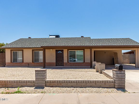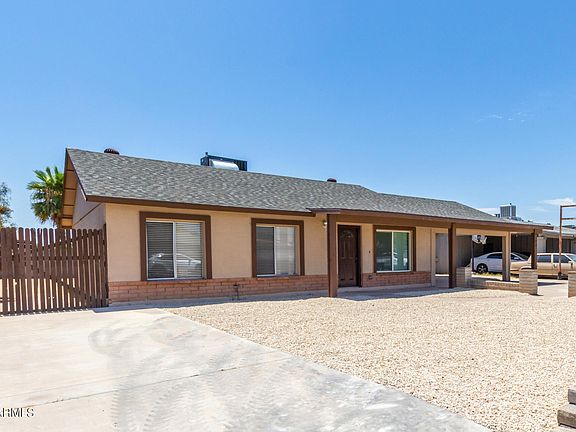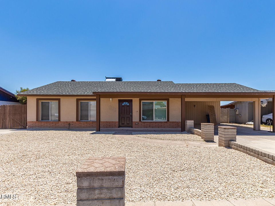 Experience the charm and warmth of this 3-bed, 2-bath home in a desirable Phoenix location! Offering a 2-carport parking space with an extended driveway and a versatile storage room. You'll love the welcoming interior, featuring a formal living room great for receiving guests! The neutral paint and abundant natural light, perfectly complement the wood-look tile flooring that stretches t/out the home. The eat-in kitchen boasts recessed lighting, ample cabinetry & counter space, and a peninsula w/breakfast. Main bedroom, with a private bathroom, ensures comfort and convenience. Discover the spacious backyard with a covered patio & a storage shed! This outdoor area holds enormous potential for customization and can be an ideal outdoor living space that matches your lifestyle.