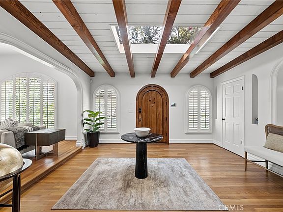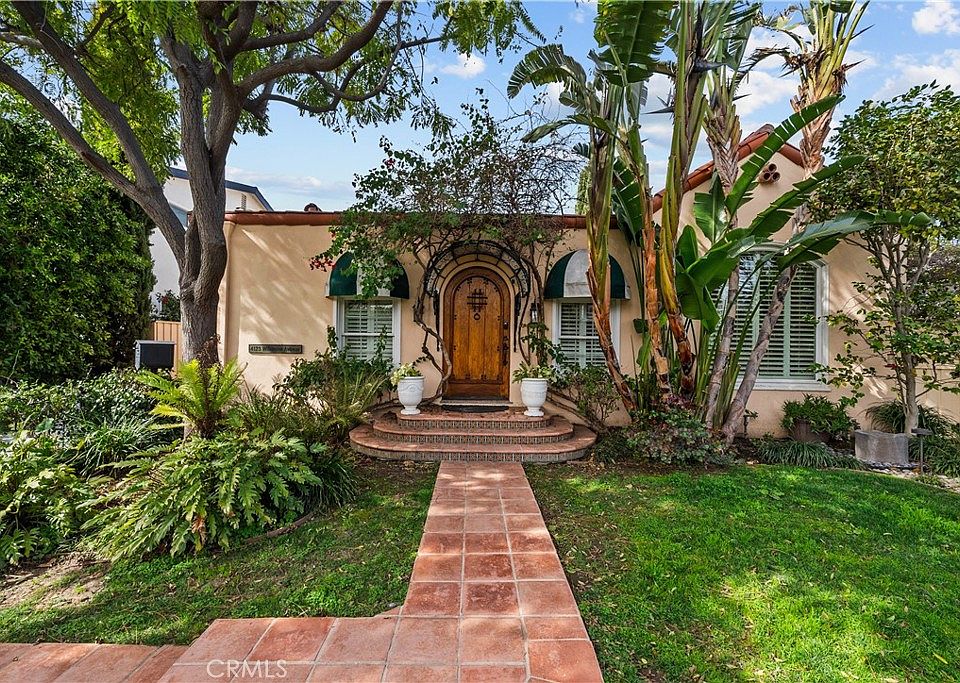 Nestled on a picturesque, tree-lined street in the coveted Footbridge Square community of Studio City, this charming 1927 Spanish Bungalow is a true gem! Blending timeless character with thoughtful updates, this home welcomes you with a dreamy entryway, arched doorways, and stunning hardwood floors. Step inside to a sun-drenched living and dining area, where soaring ceilings, elegant molding, and rich wood beams create a warm and inviting atmosphere. The eat-in kitchen is a perfect mix of vintage charm and modern convenience, featuring retro-style Big Chill appliances and easy access to the backyard—ideal for BBQs and al fresco dining.The home offers three well-appointed bedrooms, with custom California Closets in Bedrooms 1 and 2. The third bedroom features sliding doors that open to the spacious backyard, where multiple patios, an outdoor sink, and lush greenery provide endless opportunities for relaxing, gardening, and entertaining. A bright, airy studio space—complete with skylights—is attached to the two-car garage, offering the perfect spot for a creative retreat, home office, or gym. The front courtyard is enclosed with wrought iron fencing, while a long driveway leads to the garage and is secured by an electric gate for added privacy. Located in the award-winning Carpenter School District, this home is just moments from Ventura Blvd’s vibrant shops, cafés, top restaurants, and the beloved Studio City Farmers Market.This Spanish beauty is truly special—don’t miss your chance to call it home!