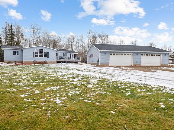 Nestled on a 20-acre wooded lot, this Emily home is ready for you! With multiple garages, storage spaces, room to roam, and hunting areas, the availability of this updated property makes this a fantastic opportunity. The inviting entry way will welcome you into the informal dining room with built in cabinetry and flows into the kitchen with breakfast bar island, walk in pantry, newer stainless-steel appliances and LVP flooring. Relax in the living room that features large windows, a stone-faced gas fireplace and built-in book shelving with storage cabinets. Off the living room is a convenient office with a built-in desk. The primary bedroom overlooks the acreage and boasts a walk-in closet, private full bath with separate shower and corner tub, dual sinks and skylight. There are two other generously sized bedrooms and another full bathroom. The family room has laminate flooring, vaulted ceilings and leads out to the cozy 4 season porch wrapped in windows, glass French doors, tongue and grove walls and views of the wildlife. This convenient one level living home includes the laundry area that leads out to the screened in porch perfect for grilling, sipping a cup of coffee or enjoying a glass of wine. The large 56’ x 42’ main garage is insulated and heated and offers multiple options to make the most of. Perfect for all your vehicles, ATV’s, toys, shop projects and more. There’s also a large, walk-in storage room. The second 32’ x 24’ garage provides ample additional storage space. The rear of the acreage provides opportunity for various hunting activities of deer, bear, turkeys, grouse, geese and ducks. Recent updates include new roofing and siding in 2023 for the home and main garage, newer sliding glass door, maintenance free decking, stainless steel appliances and fresh interior paint in the main areas.