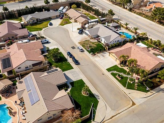 Stunning West Palmdale Single Story Harris Built Home Located on a Cul-de-sac in Very Desirable Area w/RV Parking. Updated 4 Bed / 3 Bath Home Features Vaulted Ceilings, Tile Flooring Throughout the Common Areas, Upgraded Laminate Flooring & Ceiling Fans in the Bedrooms. Custom Plantation Shutters on All Doors and Windows. Spacious Kitchen has Granite Counters, Large Stainless Sink, Breakfast Bar, Dining Area and opens to Family Room with Fireplace. Large Master Bedroom has Vaulted Ceilings w/Sliding Door to Patio. Custom Master Bathroom is a Relaxing Retreat with Granite Counters, Shower Surround and Tub Deck along with Dual Sinks. Large Walk-in Shower with Stone Floor and Soaking Tub. Professionally Landscaped Front & Rear Yards Feature Stamped Concrete and Rock Pavers. Large Concrete area for RV and Trailer Parking. Outside Recently Painted. Backyard has Two Alumawood low maintenance Lattice Patio Covers, Seating Areas, Raised Planter Beds, Lighting and Tranquil Waterfall with Pond.