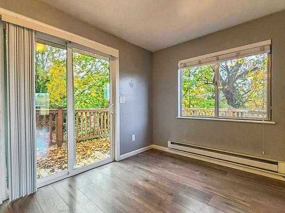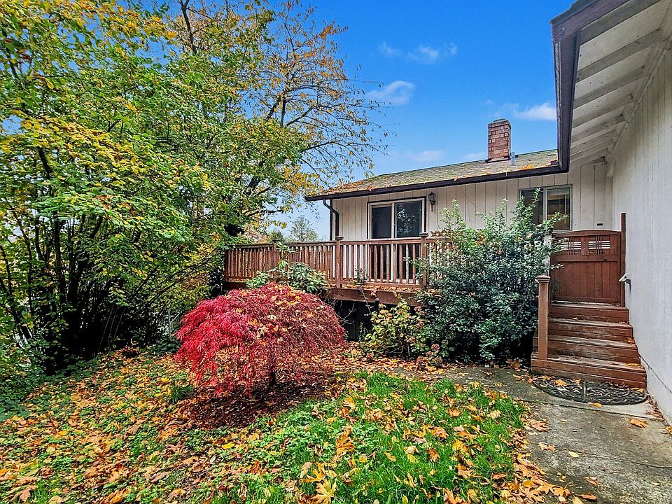 AVAILABLE NOW! This charming home, tucked away and surrounded by beautiful mature trees, offers three comfortable bedrooms, two bathrooms, and a kitchen with a dining area that opens to the outdoor space. The bright living room features a wood-burning fireplace and large west facing windows that fill the space with natural light and showcase beautiful evening sunsets. Enjoy peek-a-boo views of the water from the living room and the spacious deck. The home also includes in-unit laundry, a one car garage, and a generous yard.