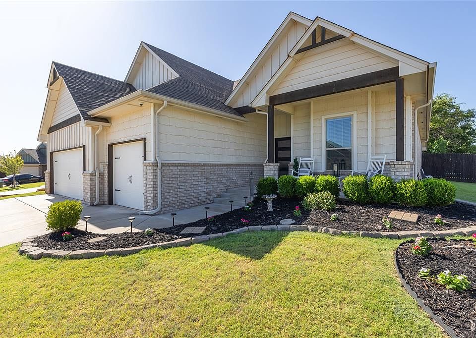 Model Home Upgrades | Corner Lot | Edmond Schools Beautiful 4-bedroom, 3-bath home on a premium corner lot with thoughtful upgrades throughout. Built in 2019, this former model home features 10-ft ceilings, granite countertops, designer lighting, and a flexible floor plan. The open-concept living space includes a gas fireplace and a chef’s kitchen with stainless steel appliances, custom cabinetry, large island, and upgraded finishes. Private primary suite offers a jetted tub, walk-in shower, dual granite vanities, and spacious walk-in closet. Three additional bedrooms plus a large upstairs flex space with full bath and closet—ideal as a fifth bedroom, guest suite, media room, or office. Attic access is conveniently located through a door in the upstairs flex space—no pull-down ladders required. The 3-car garage is heated and cooled and includes a built-in storm shelter and barn-door divider between bays for added functionality. Smart home features include dual-zone HVAC, security system with front and back cameras, Ring doorbell, and app-controlled thermostats. Enjoy the covered patio with a wood-burning fireplace, string lights, BBQ pit, and included patio furniture. Sprinkler system installed. Sellers coordinated with EPS to add a personalized bus stop right next to the home for elementary, middle, and high school students—doorstep pickup and drop-off! Neighborhood includes parks, playground, pond, walking trails, basketball and volleyball courts, and regular community events. Bonus features: tankless water heater, indoor storage under stairs, jacuzzi tub, and more. Another bonus - the refrigerator, grill, back porch TV, back porch string lights, and outdoor swing stay with the home! Schedule your showing today—this one checks all the boxes!