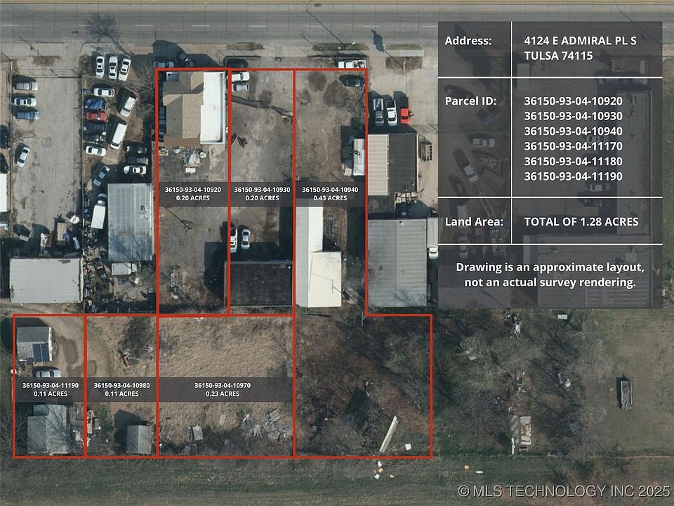 6 total adjacent commercial lots included in this sale, sold as a package (Total of 1.28 acres): 4122 E Admiral Pl (0.2 acres), 4124 E Admiral Pl (0.2 acres), 4128 E Admiral Pl (0.43 acres), 4109 E Admiral BV (0.11 acres), Parcel ID 36150-93-04-11170 (0.23 acres) and Parcel ID36150-93-04-11180 (0.11 acres).