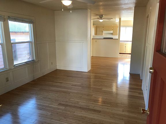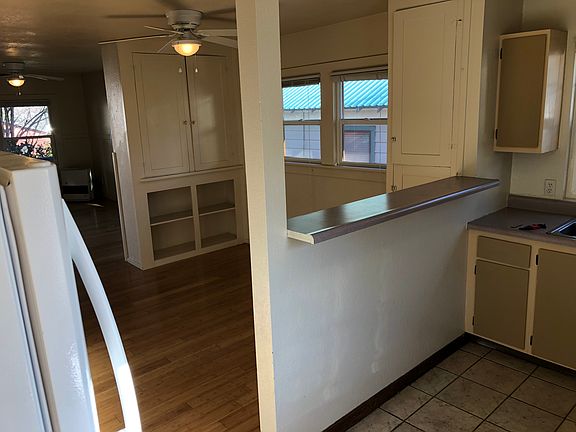 Nice two bedroom house with recent paint and carpet inside, new stairs outside, shady front porch and good sun in the back yard. Ceiling fans, bamboo floors, built in storage, tile in the kitchen, bathroom and laundry room with hookups. Monitor heater that runs on kerosene. Double pane windows. Large unfinished basement with lots of storage. Available early September. One small pet considered with extra deposit but yard not fully fenced. Please apply on Zillow or enquire by email for a link to a google form. One year lease, long term preferred. Renter is responsible for utilities: water, sewer and garbage with the city, electricity and kerosene. Renter also responsible for yard maintenance. No smoking, 5 years rental history and credit check required.
