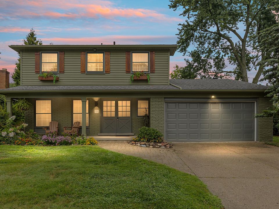 Beautifully updated colonial in the heart of Royal Oak featuring four bedrooms, a finished basement, and a spacious layout perfect for everyday living and entertaining. This charming home welcomes you with a covered front porch and offers a bright main floor with a large living room, separate dining room, and cozy family room with access to the backyard patio. The kitchen includes quartz countertops, a KitchenAid gas range, and a breakfast nook that flows nicely into the main living areas. Upstairs you'll find four comfortable bedrooms with Schumacher wallpaper, including a primary suite with a private bath. The basement provides even more living space with a game room, laundry, and a second fireplace. Attached 2.5-car garage, great curb appeal, and a prime location. Close to downtown Royal Oak, schools, and parks. Welcome Home!
