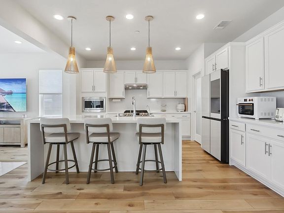 Waterfall quartz islandStunning chandelierSoaring ceilingsPremium lvp flooringSeamless indoor-outdoor livingOversized bedroomsElegant pendant lighting