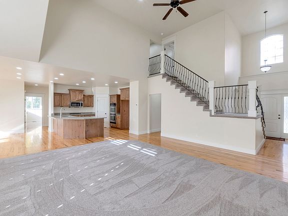 Enjoy the perfect blend of convenient city access and peaceful country living in this quiet cul-de-sac home. Situated on a beautifully landscaped half-acre lot, the property features a mini orchard with apple, nectarine, peach, and apricot trees, along with raised garden beds, established strawberries, and raspberries. The spacious, fenced backyard is ideal for watching fireworks or enjoying a quick game of football or soccer. Step inside to a bright, open-concept living space that's perfect for entertaining, with an oversized kitchen, dining, and family room. Large windows fill the home with natural light throughout the day. The main-floor master suite allows for true single-level living, while the basement offers the option for a roughed-in mother-in-law apartment with a separate entrance through the garage. Additional highlights include hickory hardwood floors, a gas cooktop, double ovens, recessed lighting, central vacuum, and plenty of storage throughout.