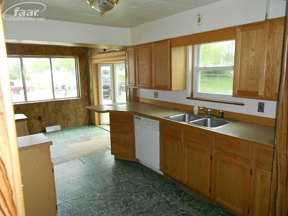HUD Home. Mt Morris Twp!! Great opportunity on this 3-Bedroom, 1-bath ranch home in the Westwood Heights School District. Updated and spacious Oak Kitchen with great cabinet and countertop space, featuring floor to ceiling bow window in dining area. Living Room boasts brick-wall, raised-hearth fireplace. Newer vinyl windows throughout. Full basement,fenced-in yard plus oversized 2-car detached garage complete the picture.