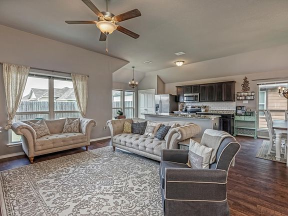 Absolutely Stunning Style Craft home located in Fork Ranch Subdivision on the outskirts of Waco. This 4 bed 2 bath home boast loads of Style Craft upgrades. The floor plan that this particular home has is no longer available to Waco, as this one offers an extra 200 sq. ft. Step in from the covered porch and into the spacious living area looking directly into the dining room and kitchen. Many large windows create lots of natural light adding an airy feel to the openness of this cute home. Kitchen boast large island with breakfast bar overlooking the living room, leaving a clean sparkling feel with dark cabinets and granite countertops that blend well with the wood laminate flooring flowing thought-out the living space. Master suite boasts dual vanity with granite counter tops and separate tub. Don't miss a chance to see this property, call for a showing today!