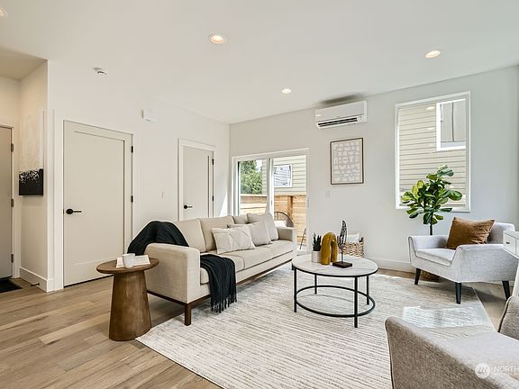 Discover the hidden gem of Woodland Lane nestled in the vibrant Wallingford neighborhood; each home has its own unique charm! Well thought out floor plans, A/C, dual sinks in primary bath, oversized shower & gleaming wood floors that pave the way through bright, open living spaces, bronze tile & quartz slab sink in powder bath. The kitchen features stainless steel appliances w/ ample prepping space. Unwind on your private rooftop deck, offering breathtaking views of the skyline & Lake Union! The front yard & back fenced patio are perfect for gardening/pets. Walk to an array of eateries. Bike to SLU, easy access to 99! **Inquire about 1% lender paid credit to the buyer *Limited time offer - $20,000 Buyer Purchase Credit on select homes*