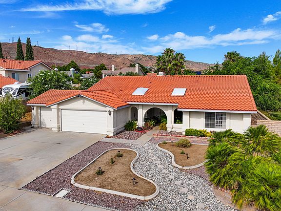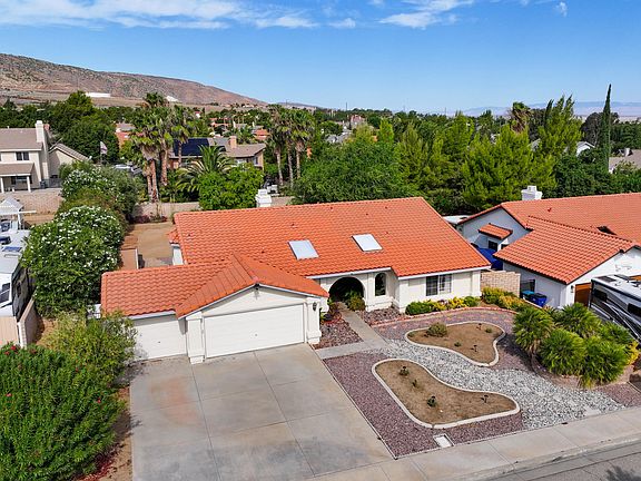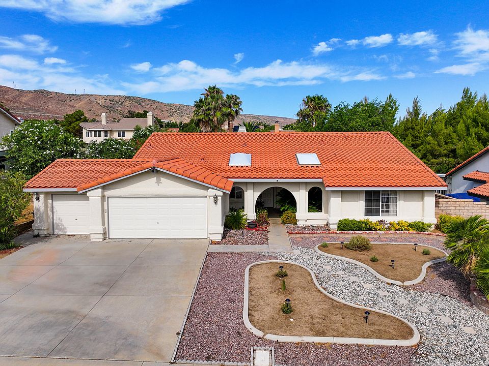 Welcome Home. This single story 3 bedroom 2 bath home is located on a Cul-De-Sac in the West Palmdale neighborhood of Steeple Hill Estates. Double door entry at the covered front porch with skylights, Sago Palms and Hydrangea. A 3 car garage with 4 roll up doors (single car side has pull thru access to rear) over 12,000sqft lot with patio slab and shade cover in the rear with raised fire pit/gazebo area. The Interior of the home has Vaulted Ceilings and Lavish Updates throughout. The kitchen has been updated with granite counter tops, newer real wood cabinetry, a 40 Kenmore Elite 5 burner Range, 2 Drawer stainless steel dishwasher, stainless microwave and tile backsplash. Dual Sided fireplace to be enjoyed from family and living rooms, open floorplan with ample light from windows. The Backyard of this Beautiful Home is an Entertainers Delight with It's Landscaped and Hardscaped Areas, NO HOA, NO MELLO ROOS
