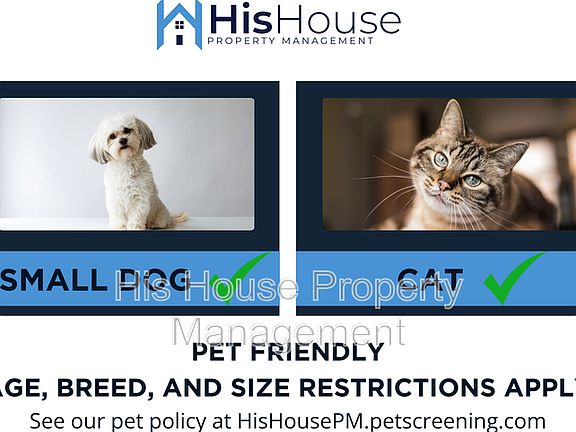 PET FRIENDLY! (Maximum of 2 SMALL Dogs- Age, Breed, & Size Restrictions Apply)