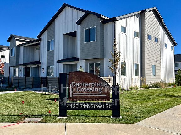 Don't miss this luxury end-unit townhouse in west Greeley's Centerplace Crossing subdivision. This unit features high-end finishes throughout! The open-concept main floor consists of one living area with recessed lighting and 9' ceilings, a dining nook with custom lighting, and gourmet kitchen with quartz counters, 42" shaker-style cabinetry, and a stainless appliance package. Also on the main floor is a powder room and access to the attached 2-car garage. Upstairs you'll find 3 bedrooms, 2 full baths, and washer/dryer hook-ups. The primary bedroom suite features two walk-in closets, large windows that let in plenty of natural light, as well as a 4-piece private primary bath with a walk-in shower featuring custom tile work. This unit is perfectly located within walking distance of the Centerplace Shopping Center. Don't miss it!