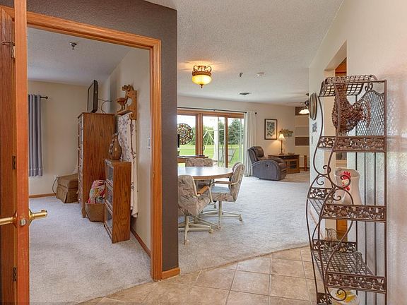 Great value in this spacious 1 bedroom end unit condo that is located in a secured building. Designed with your lifestyle in mind. Come and go as you please, live independently and be surrounded by others that are 55+. Carpet is newer, all appliances included except the freezer. Lots of storage throughout with coat closet, a pantry closet, spacious bedroom with a double closet, in-unit laundry closet with a stackable unit. Enjoy your morning beverage on your attached patio and get your exercise with access to the Trail system. Also a breakfast bar for you to enjoy your meals or use the dining space. Living room is large with lots of light from the patio doors. Common areas include: Library, Community Room, Craft, Woodworking, and Exercise rooms. Also private 5 X 5 storage closet, as well as access to a bedroom for your guests that can be rented. Common heated garage that is attached to the building. Carefree living, no snow removal or lawn maintenance here! You can also bring one dog or one cat that is less than 25lbs. Call today to get inside!
