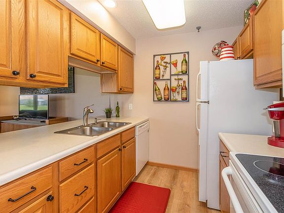 Ready To Enjoy! This Lovely 55+ Condo Offers Main Floor Living And An Open Concept Floor Plan. So Many Updates Throughout Including New Carpet/Pad, Bathroom And Kitchen Flooring, Pantry Shelving, Faucets, Light Fixtures, And Wired Smoke Alarms. The Oak Kitchen Features Matching White Appliances With New Garbage Disposal And Dishwasher. The Living Room Showcases Updated Window Coverings And Adjoining Dining Area Are Filled With Natural Light Beaming In From The Sliders To Your Patio. The Patio Has Beautiful Landscaping Surrounding It And Is Perfect For Morning Coffee And Visiting With Friends. The Bedroom Is Spacious And Has A Great Sized Closet With Large Full Bathroom Next Door. In Unit Laundry Tucked In A Closet Finishes Off This Space. This Amazing Property Also Includes A Great Community Room, A Library, Large Exercise Room, And A Woodworking Room For Your Convenience. Other Amenities Include Indoor Parking, Additional Storage Space As Well As A Guest Room Available Upon Request. The Condo Association Fee Is $220 And Includes Water, Sewer, Garbage, Natural Gas, Lawn Care And Snow Removal. Check Out This Great Condo Today!