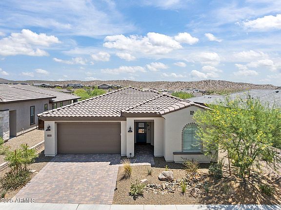 Located in the picturesque Wickenburg Ranch community, this charming home boasts an array of desirable features perfect for modern living. Upon entering, you're greeted by a spacious covered porch, ideal for enjoying the serene surroundings. The heart of the home is its beautiful kitchen, complete with a large island that provides ample space for cooking and entertaining. Natural light floods the open living space thanks to a large wall of sliding glass doors, seamlessly blending the indoor and outdoor areas. Step outside onto the extended covered back patio, where you can unwind and dine al fresco while taking in views of the mountains in the east facing, fully fenced backyard. This thoughtfully designed home offers 2bed, 2 baths, and a large den/office. The home provides comfortable accommodations for both residents and guests. Additionally, a two-car extended garage provides convenient parking and storage space. Whether you're relaxing indoors or enjoying the outdoor amenities, this Wickenburg Ranch home offers the perfect blend of comfort and style in a breathtaking desert setting.
