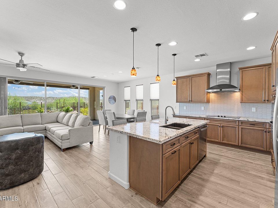 Fully fenced backyardBeautiful kitchenViews of the mountainsLarge islandNatural lightSpacious covered porchExtended covered back patio
