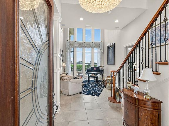 Welcome to The Reserve of Old Tampa Bay—Tampa Bay’s most coveted gated waterfront enclave, where timeless elegance meets resort-style living. Tucked away behind lush tropical palms, this renowned community offers unparalleled privacy, direct water access, and the kind of sunrises and sunsets that define Florida’s West Coast lifestyle. Custom-built in 2006 by the esteemed Alvarez Homes, this architectural masterpiece makes an unforgettable impression from the moment you arrive, as double custom entry doors open into a grand two-story foyer crowned by a dazzling crystal chandelier. To the left, an elegant formal dining room sets the stage for exquisite dinner parties, while the formal living room offers dramatic floor-to-ceiling bay views anchored by a Baby Grand player piano. The first level is designed for both luxury and convenience, featuring a guest or mini-owner’s suite complete with a private balcony perfect for morning coffee with serene views, direct poolside access, an ensuite bath, and a walk-in closet—ideal for multigenerational living or extended stays. A statement powder room showcases an artistic floor-to-ceiling Florida mural, while a discreet private entrance to the one-car garage ensures privacy. The chef’s kitchen is nothing short of extraordinary, outfitted with professional-grade appliances including a Wolf gas cooktop, Bosch convection oven, Profile microwave, Sub-Zero refrigerator, wine chiller, and Bosch dishwasher, all complemented by custom cabinetry, granite counters, and an expansive island that elevate both form and function. Nearby, the laundry suite connects to a two-car garage with a custom lift, tankless water heater, water softener, and reverse osmosis system. Designed for entertaining, the open-concept family and dining areas boast custom built-ins, an in-house audio system, and fully pocketing glass sliders that dissolve the boundary between indoor luxury and outdoor splendor. Step onto the expansive patio and experience resort living at its finest with a private heated saltwater pool, cascading spa, and sauna, all framed by panoramic bay views, while a poolside half bath and fully equipped outdoor kitchen—complete with granite bar, counter seating, and gas grill—make alfresco entertaining effortless. After dinner, launch your boat from the private lift and cruise the sparkling waters of Old Tampa Bay. Ascending via the chandelier-lit elevator, the second level is equally impressive, with a dramatic catwalk leading to two spacious guest suites, each with walk-in closets, a shared Jack-and-Jill bath, and private balconies. Across the way, a loft and bonus room conceal a hidden passage to the show-stopping primary suite, where indulgence awaits in a spa-inspired retreat featuring dual vanities, two private water closets, a deep jetted soaking tub, and a grand walk-in shower. Additional upgrades include a brand-new metal roof, ensuring long-lasting durability and peace of mind. Just minutes from Downtown Tampa, the Gulf Beaches, and Tampa International Airport, The Reserve of Old Tampa Bay offers the perfect balance of exclusivity and convenience—more than a residence, it is a statement of prestige, comfort, and unparalleled waterfront living.