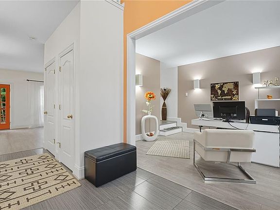 Beautifully updated and move-in ready, this home combines contemporary design with everyday comfort in a premier Kennesaw location in the desired Allatoona high school district. Nestled on a private cul-de-sac, you’ll enjoy peace and quiet while being close to Highway 41, the hospital, Town Center Mall and shopping, dining, and coffee shops. Outdoor adventure abounds with golfing, hiking at Kennesaw Mountain, boating on Lake Allatoona, running the Noonday Creek Trail, or enjoying Swift-Cantrell Park’s skate park and dog park. Kennesaw State adds vibrant cultural and educational opportunities such as opera, symphony and other fine arts performances. Kennesaw has museums and community events in the quaint historic downtown. Inside, over 4,740 square feet of living space has been thoughtfully updated. The chef’s kitchen features quartz countertops, a deep quartz sink, marble backsplash, custom cabinetry, and stainless appliances. The eat-in breakfast area is off the kitchen and overlooks the backyard with abundant natural light and access to the back deck and opens to the living room with a cozy gas fireplace. One guest suite and a full bath are located on the main floor, as well as an office, sitting room and an area for a full dining room. The expansive primary suite is a true retreat with tray ceiling, private walk-in closet, and spa-style bath featuring double vanities, a marble-tiled shower, and soaking tub. Each additional bedroom includes its own large closet with custom storage, and all bathrooms have been updated with stylish finishes. Engineered hardwood flooring runs throughout, and the attic has been finished with lighting and flooring for convenient storage. The finished terrace level is wheelchair accessible from the driveway and offers its own full kitchen, laundry, bedroom, living area, and step-free shower, making it perfect for guests or multigenerational living. Out back, enjoy a private retreat with Trex composite decking, a stamped concrete patio, a built-in firepit, and a sprinkler system that keeps the landscaping lush year-round. A storage shed, wooded backdrop, and nearby river create a natural setting where deer and wildlife are frequent visitors.