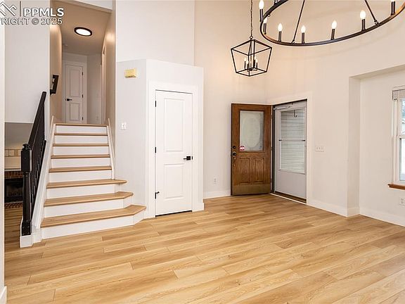 This charming home is truly *cute as a button*, offering comfort, style, and smart updates throughout. Step inside to find an inviting open floor plan highlighted by vaulted ceilings and abundant natural light. Rich laminate wood flooring flows across the main and upper levels, perfectly complemented by chic, updated light fixtures and neutral colors that create a warm, welcoming atmosphere. The heart of the home features a cozy gas fireplace framed by coveted built-ins, adding both character and functionality. From here, enjoy easy access to the back patio and expansive .25-acre lot, complete with a storage shed—ideal for outdoor living and entertaining. The kitchen shines with stainless steel appliances. Upstairs, the master suite delights with breathtaking views of Cheyenne Mountain and a private bath with dual vanities is tucked away for extra comfort. Two additional bedrooms on this level provide space for family, guests, or hobbies. The finished basement offers endless versatility—whether you need a fourth bedroom, private office, or a quiet retreat. Other highlights include central air, mountain views, and thoughtful updates that make this home move-in ready. Conveniently located within walking distance to Pinon Elementary and a neighborhood park, plus just a mile to the Safeway shopping center with dining and shops and just minutes from Ft. Carson and Cheyenne Mountain Country Club, this home offers both comfort and convenience in desirable Cheyenne Mountain School District 12. Don’t miss your chance to make it yours!