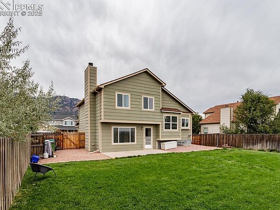 Welcome to a beautifully updated 4-bedroom, 3-bath home offering approx. 2,200 sq. ft. of living space in the award-winning Cheyenne Mountain School District 12. Perfectly situated on a spacious ¼-acre lot, this property combines comfort, style, and convenience in one of Colorado Springs’ most desirable neighborhoods. Step inside to an inviting open floor plan with vaulted ceilings and abundant natural light. Rich laminate wood flooring flows throughout the main and upper levels, complemented by modern lighting and a neutral color palette that creates a warm, welcoming atmosphere. The living room features a cozy gas fireplace framed by custom built-ins, making it the heart of the home. From here, enjoy easy access to the back patio and expansive yard—ideal for entertaining, gardening, or simply relaxing outdoors. A storage shed adds extra functionality. The kitchen impresses with stainless steel appliances and a smart layout designed for everyday ease. Upstairs, the primary suite offers dual vanities, a private bath, and breathtaking views of Cheyenne Mountain. Two additional bedrooms on this level provide comfortable space for family, guests, or hobbies. The finished basement adds versatility—perfect for a fourth bedroom, home office, or quiet retreat. Additional highlights include central air, mountain views, thoughtful updates throughout, and an unbeatable location. Walk to Pinon Elementary and the neighborhood park, or enjoy being just minutes from shopping, dining, Ft. Carson, and Cheyenne Mountain Country Club. This home is the perfect blend of charm, functionality, and District 12 living—don’t miss your chance to make yours!