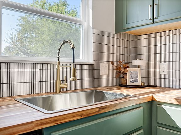 Move-in readyNew black sidingUpgraded plumbingStylish bathroom updatesRefinished patioBold green kitchenButcher block counters