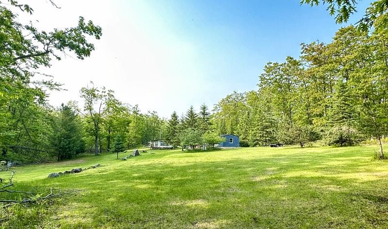 Hunters dream 40 acres with camp. The 14 x 60 mobile home with 200 sqft additional living room, offers 2 bedrooms, 1 bath and washer and dryer. Electricity, furnace, woodstove, 4 inch well, septic, drain field, and a new Generac generator in 2025. This 40-acre parcel is 1,320' wide x 1,320' deep. Trails are already in place, to guide you through the rolling hills. Beautiful hardwoods with a mix of mature oak, pine, and maple trees. 3 deer blinds and tree stands are already in place and will remain. Great hunting hotspot for bear, turkey, partridge, and white tail deer. The 14x26 garage has electricity and was built in 2021. Sellers used and enjoyed this property all year long.