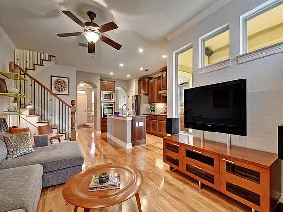 2 Hours notice to Listing Agent. Beautifully maintained home in coveted Mueller neighborhood. On quiet street. One block from pool. MBR and guest BR/BA down. 3rd BRM/Gameroom up. Granite counters, separate shower, window treatments. Hickory wood floors throughout. SS Energy Efficient appliances. 6.125 KW Solar System=low electric bills. A MUST SEE! Lease must terminate end of March, April or May 2021. Yearly extensions available.