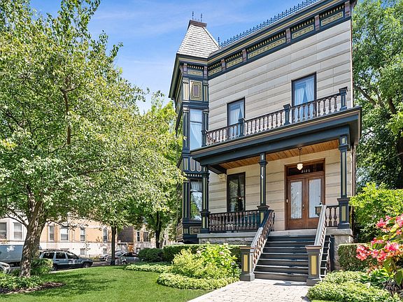Welcome home to this architecturally distinguished Graceland West treasure. This impressive home overlooks a tree-lined street on one of Chicago's most picturesque neighborhoods. This tranquil oasis offers all the conveniences of city living and is a perfect as a single-family residence or for the entrepreneur seeking a bed and breakfast opportunity. Situated among grand homes with spacious lots this meticulously restored Victorian estate features beautifully landscaped grounds and a French-inspired parterre garden. Located on a 58' x 161' corner lot with a 45' setback and originally constructed in 1894 this impeccable restoration combines modern living with exceptional detail to preservation and period details. This property offers approximately 3,576 square feet of residential space with an additional recreational 1,657 square feet in the finished lower-level. The elegantly adorned facade beautifully compliments the unique Lincrusta artistry of the foyer, which flows into the main residence with original Victorian designed Bradbury and Bradbury wall coverings. These exquisite creations are certain to leave a lasting impression. Flawless, custom millwork accents the walls, floors and staircase throughout the home along with a restored parlor fireplace and bay window with stained glass insert. The dining area features original wood beamed ceilings and a handsomely refinished, built-in china cabinet with leaded glass. Colorful, reproduced ceiling medallions delight the senses on the main and second levels. The bright, spacious kitchen offers all the modern amenities, with ample storage, a large eat-in area and two sets of double doors leading to the outdoor space. Perfect for small or large gatherings. The second level features three ensuite sleeping areas and a lovely sitting room. The primary bedroom offers a sleeping alcove and adjacent lounge which is separated by handsome, custom-milled fretwork panels. The space includes a large bay window with leaded glass insert, fireplace, beautifully crafted wall and ceiling coverings, walk-in closet and an ensuite bathroom with steam shower. The second bedroom features a built-in cabinet, walk-in closet and ensuite bathroom. The third bedroom also offers an ensuite bathroom, large closet and deck. Retreat to the lower-level family room with wet bar, wine storage, fourth bedroom/workshop, full bathroom and abundant storage. Relaxing outdoor spaces include an expansive front porch, main-level back deck and side patio, an upper deck and a garden seating area. The home includes a detached, three car garage. Enchanting craftsmanship with modern upgrades add to the charm and comfort of this lovingly restored residence. This vibrant Lakeview neighborhood is a short walk to Wrigley, the historic Graceland West cemetery, trendy boutiques and restaurants along the Southport Corridor, and Chicago's magnificent lakefront.