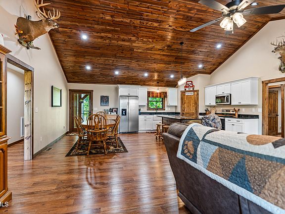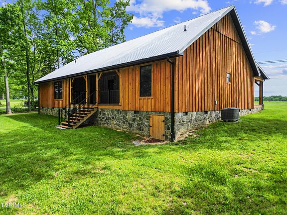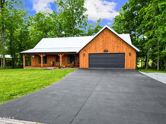 Built new in 2023, this stunning 3BR/2BA home is located in a highly desirable area of Baileyton-Greeneville, TN, offering peaceful mountain views and a private wooded setting. Still in like-new condition, the home features white pine board & batten siding, black fiberglass Marvin windows, and a galvanized metal roof. Inside, enjoy tongue-and-groove vaulted ceilings, luxury vinyl plank flooring, and granite countertops in both the kitchen and bathrooms. The gourmet kitchen includes a large island, farmhouse sink, and stainless steel appliances (all under warranty). The master suite boasts a tiled shower with glass door and a floating tub. Split floor plan provides privacy with two bedrooms and a full bath on the opposite side of the home. Perfectly set up for a potential Airbnb. Enjoy your morning coffee on the covered front porch and relax in the evenings on the back covered porch. Property includes a finished 1-car garage, shed, and a brand-new sauna. Meticulously landscaped and move-in ready. Option to purchase fully furnished. Seller is also offering a 1-year home warranty for buyer peace of mind. Don't miss this quiet country gem with upscale features and unforgettable views!