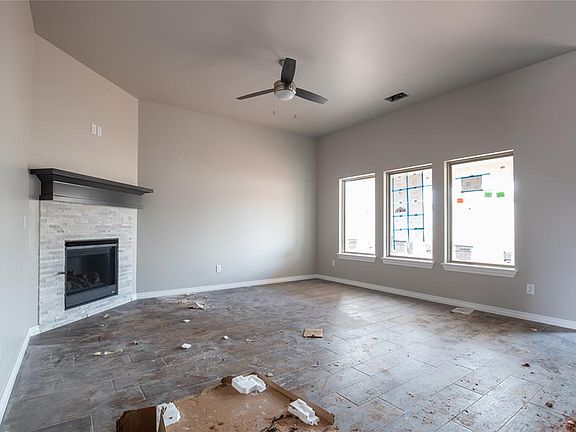 This Kamber floor plan includes 1,905 Sqft of total living space, which includes 1,750 Sqft of indoor living space & 155 Sqft of outdoor living space. This home offers 3 bedrooms, 2 full bathrooms, 2 covered patios, a utility room, & a 2-car garage with a storm shelter installed. The living room presents high ceilings, a ceiling fan, wood-look tile, a corner gas fireplace surrounded by our elegant stacked stone detail, and 3 large windows. The high-end kitchen supports a large center island, stunning pendant lighting, custom-built cabinets to the ceiling, stainless steel appliances, decorative tile backsplash, 3 CM countertops, and a large walk-in pantry. The large primary suite spotlights a sloped ceiling detail with a ceiling fan, windows, & our cozy carpet finish. The prime bath offers a Jetta Whirlpool tub, a dual sink vanity, a walk-in shower, a private water closet, & a HUGE walk-in closet! Covered outdoor living supports a wood-burning fireplace, a gas line, & a TV hookup. Other amenities include our healthy home technology, a tankless water heater, R-44 insulation, a fresh air ventilation system, & so much more!